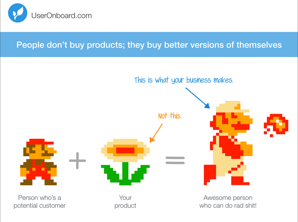 Once upon a time, I re-tweeted a tweet that said: “People don't buy products; they buy better versions of themselves” (by UserOnboard).