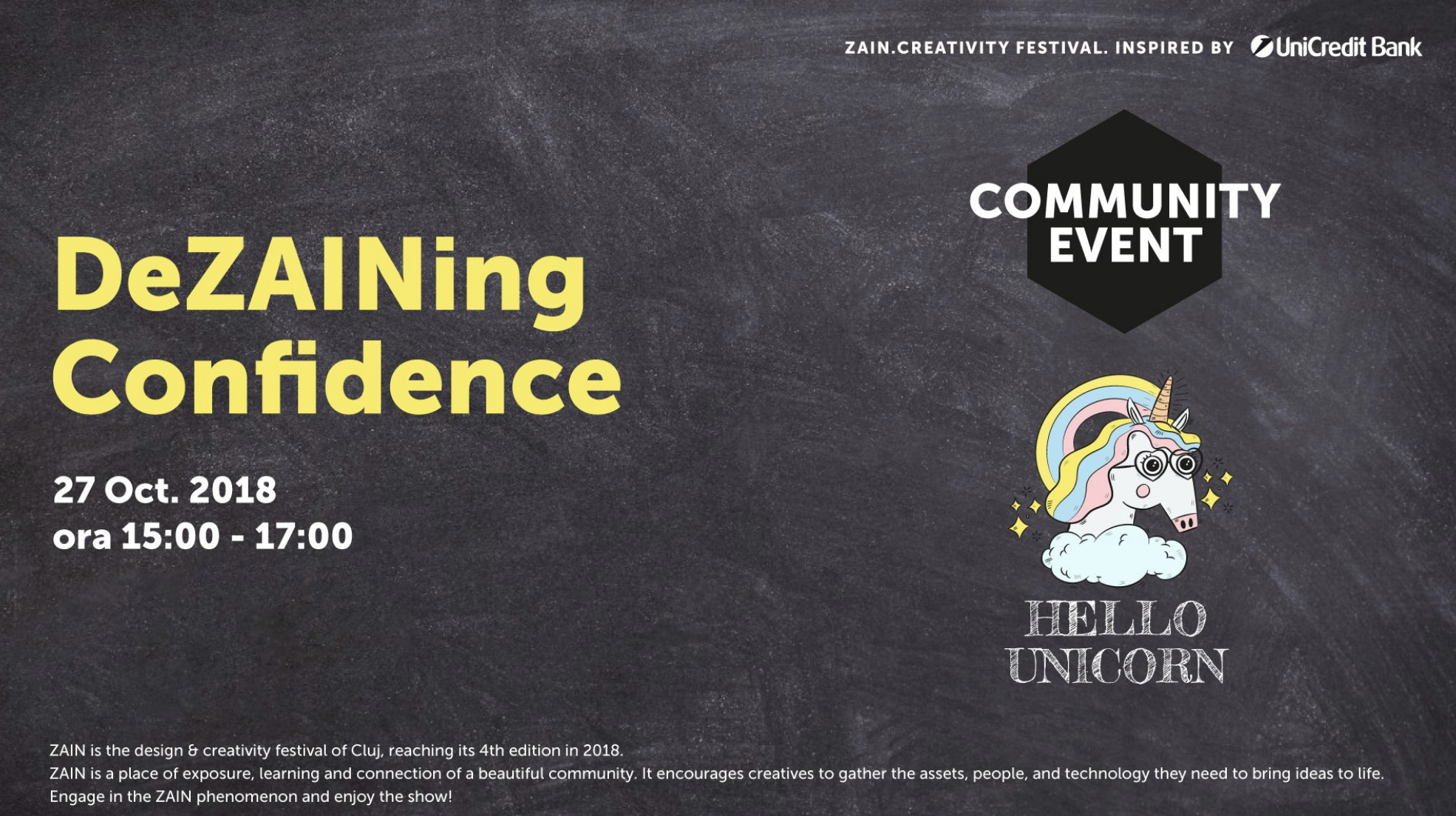 The workshop was part of a design festival (ZAIN festival in Cluj-Napoca, Romania), and its aim was to show how we can use design thinking for personal development. Gaining confidence is more than a psychological area of development, and it's important in how to develop this characteristic, because, contrary to popular belief, confidence can be designed into one's life. Confidence is about how you present yourself, how to think creatively, how to use your body posture to show your confidence - all these were transformed into exercises, individual and group ones that the participants used to learn and express their confidence.