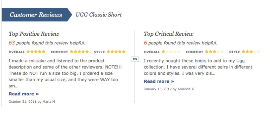 Do not hide negative reviews. Zappos provide a nice example of this. The problem with displaying only “5 star” positive reviews is that people might think it's too good to be true.