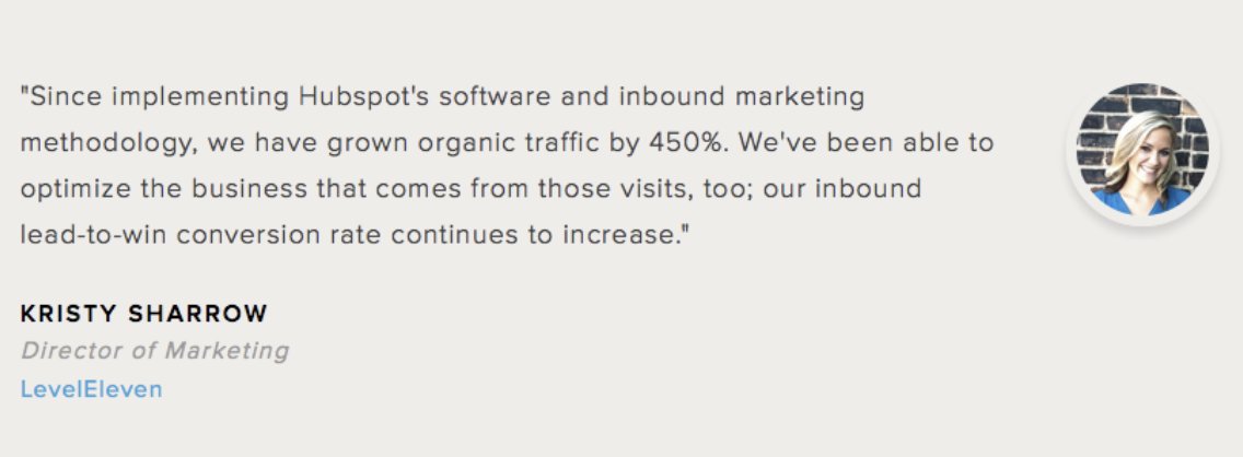 Include a smiling image of a customer, as research about increasing “truthiness” indicates that pictures increase trust among participants. See the example below from HubSpot.