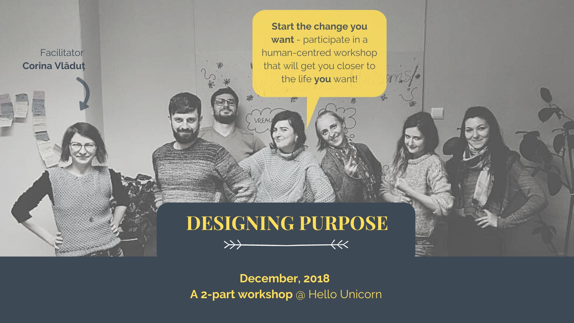 In Romania, young people face a disconnect between what they aspire to do and what they actually doing. To explore purpose, I got inspiration from design thinking and constructed a workshop that permits participants to map out their needs and purpose. As a founder of the newly playground called Hello Unicorn, a place for creatives in Romania, this project was looking for ways to promote design thinking also for personal development, knowing the need for play and creative expression of young Romanians.